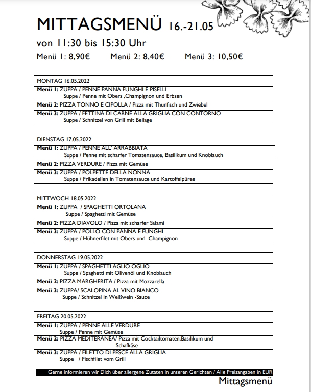 Unsere Mittagsmenüs gibt es täglich frisch